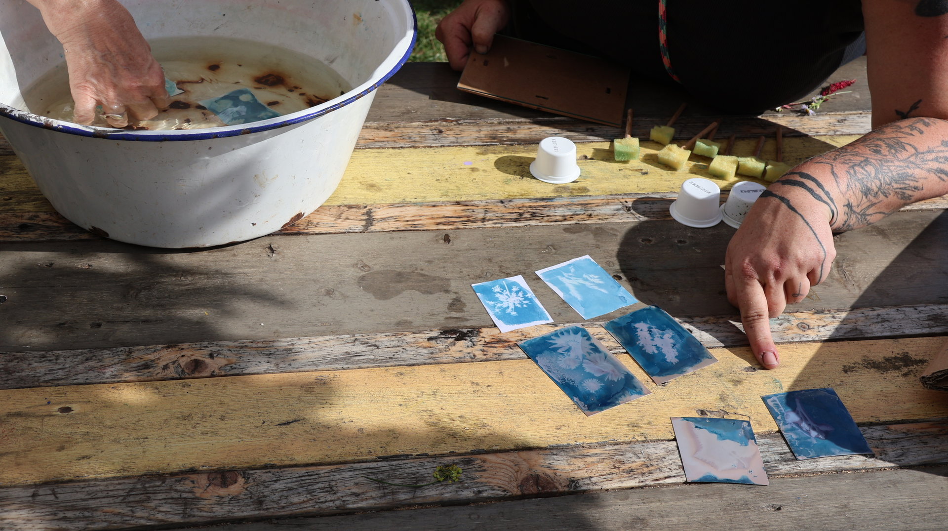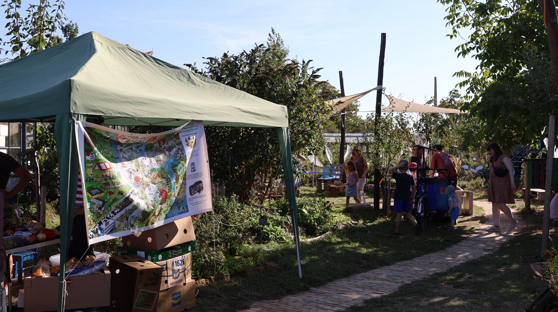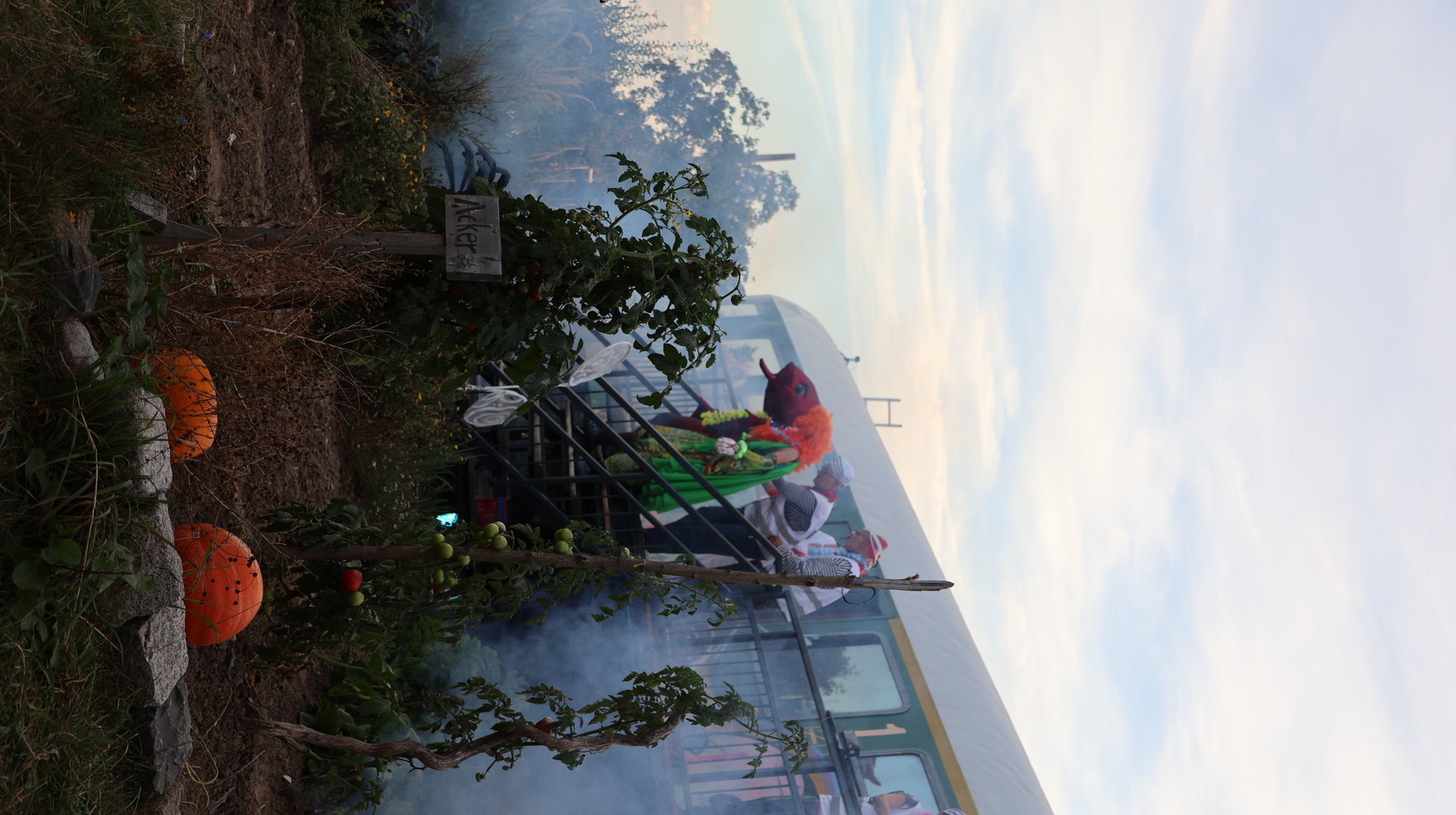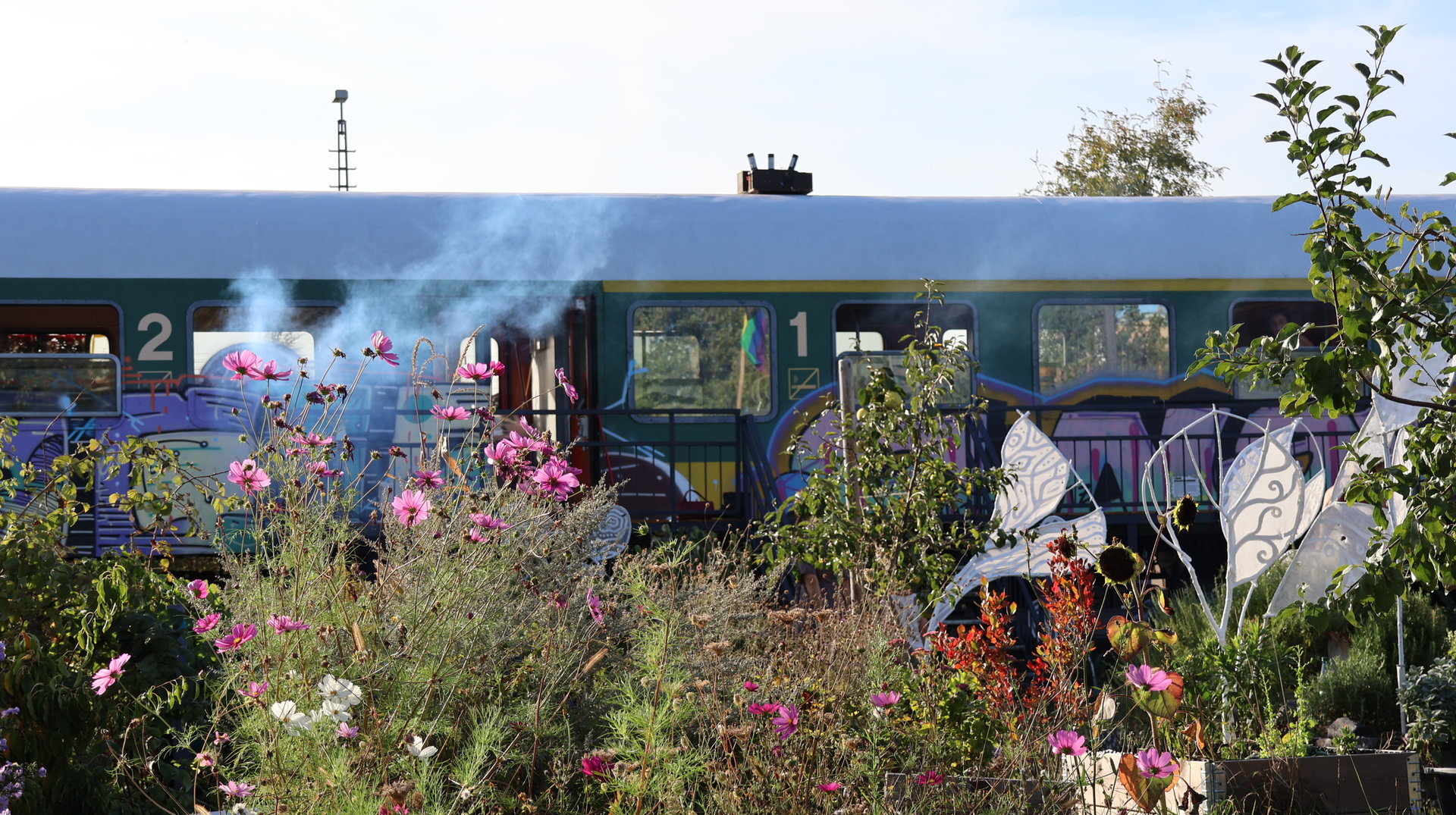 Vormittags ginge los mit einem Sensen-Workshop mit Ekkehard Unger . Ab 12 Uhr wurden wir gemeinsam beim Workshop Sonnendruck kreativ und haben aus kleinen Hildegarten-Funden und Papierresten Kunstwerke mit der Sonne gezaubert. Die Bibliothek Plagwitz war dieses jähr auch wieder mit einer Bastelaktion und Geschichten für Groß und Klein mit dabei. Außerdem konntet ihr euch über verschiedenste Themen informieren: Martin Schlegel hat an seinem Stand seine Peer-Beratungvorgestellt. Es gab einen Infostand von foodsharing und der Aktionswochen für gentechnikfreies Essen. Zum Abschluss des Co-Ups gab es ein besonderes Highlight: Das Theaterstück „Arche Inklusia“. Eine musikalisch-performative Reise ins Paradies mit Expeditionen und Landgängen im „Garten der Seligen“. Mit dabei waren das Theater aus dem Hut, Fröhlicher Chor und denkmalsozial aus Leipzig und Torgau. Artisten und verwandlungsfreudigen Amateur*innen mit und ohne Behinderung. Und: Der Waggon wurde eingeweiht!