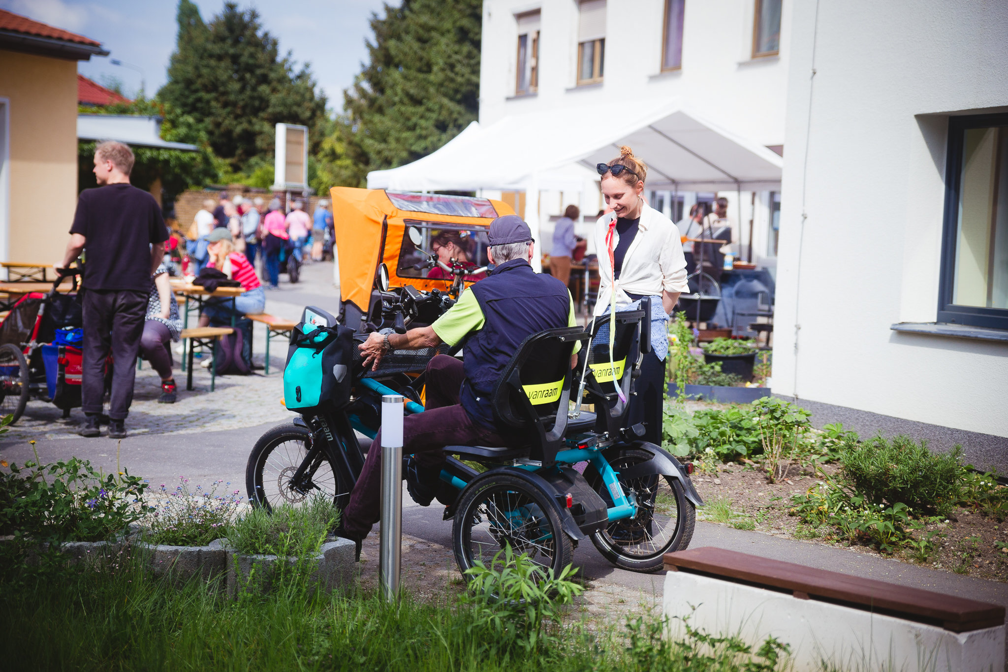 Im Zentrum stand die Podiumsdiskussion, bei der wir über die Mobilitätsmöglichkeiten für Menschen mit Handicap und Senior*innen in Leipzig diskutierten. Besucher*innen konnten zudem an begleiteten Rundfahrten mit einer Rikscha oder einem Parallel-Tandem teilnehmen und so selbst einmal den Gebrauch inklusiver Fahrzeuge erstmalig oder besser kennenlernen. Für alle Interessierten haben wir zudem einen Rundgang durch die inklusive Wohngemeinschaft Connewitz angeboten.