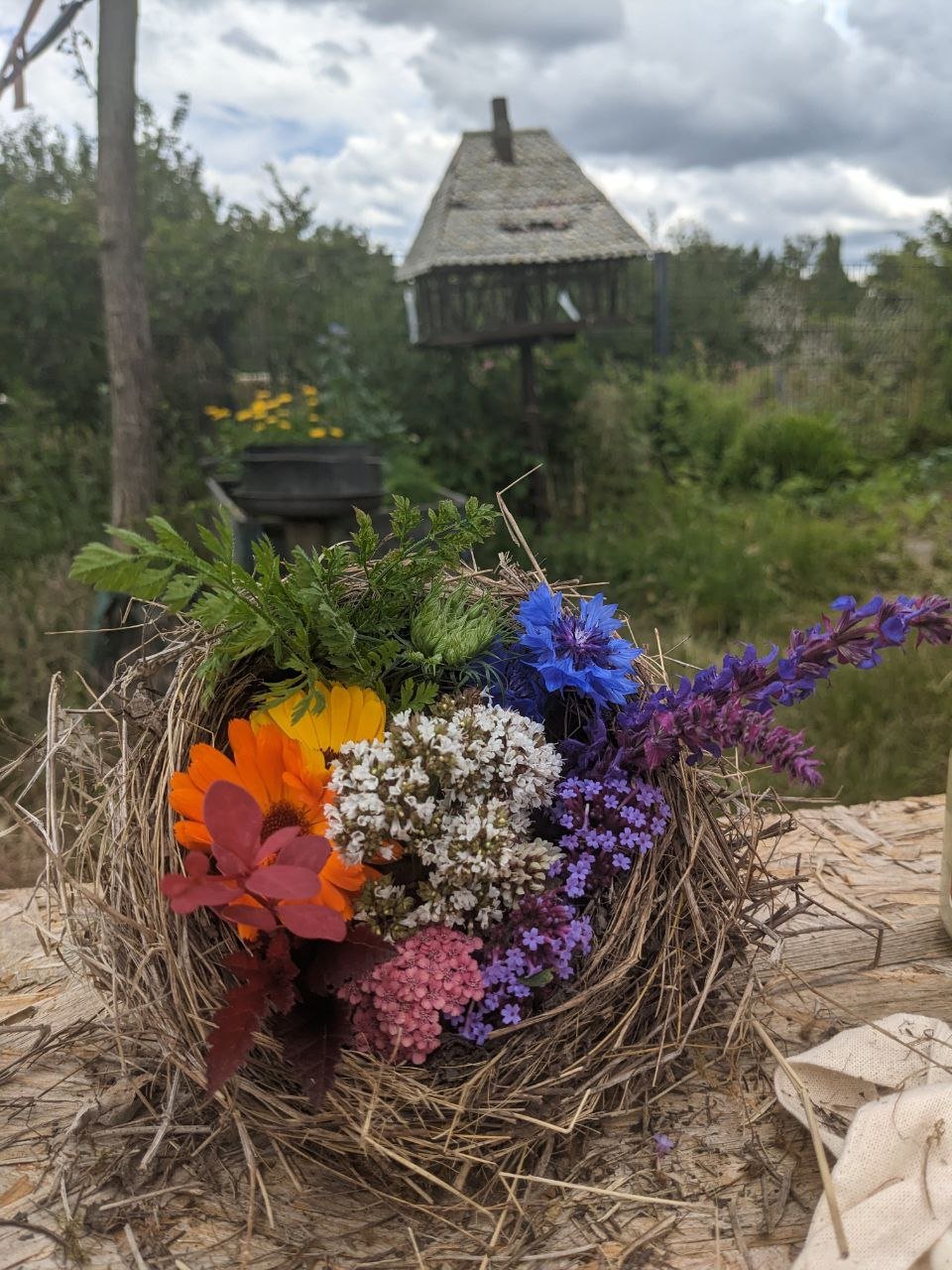 In Vergrößerungsgläsern haben wir kleine Insektennester gebaut und in ihnen konnten sich unsere großen und kleinen Besucher*innen Insekten mal ganz genau anschauen. Beim Insektenangeln konnte Neues über die kleinen Lebewesen im Garten gelernt werden und zwischen Himbeeren und Lavendelsträuchern wuselten und flogen Marienkäfer, Hummeln oder Steinbockkäfer umher.
