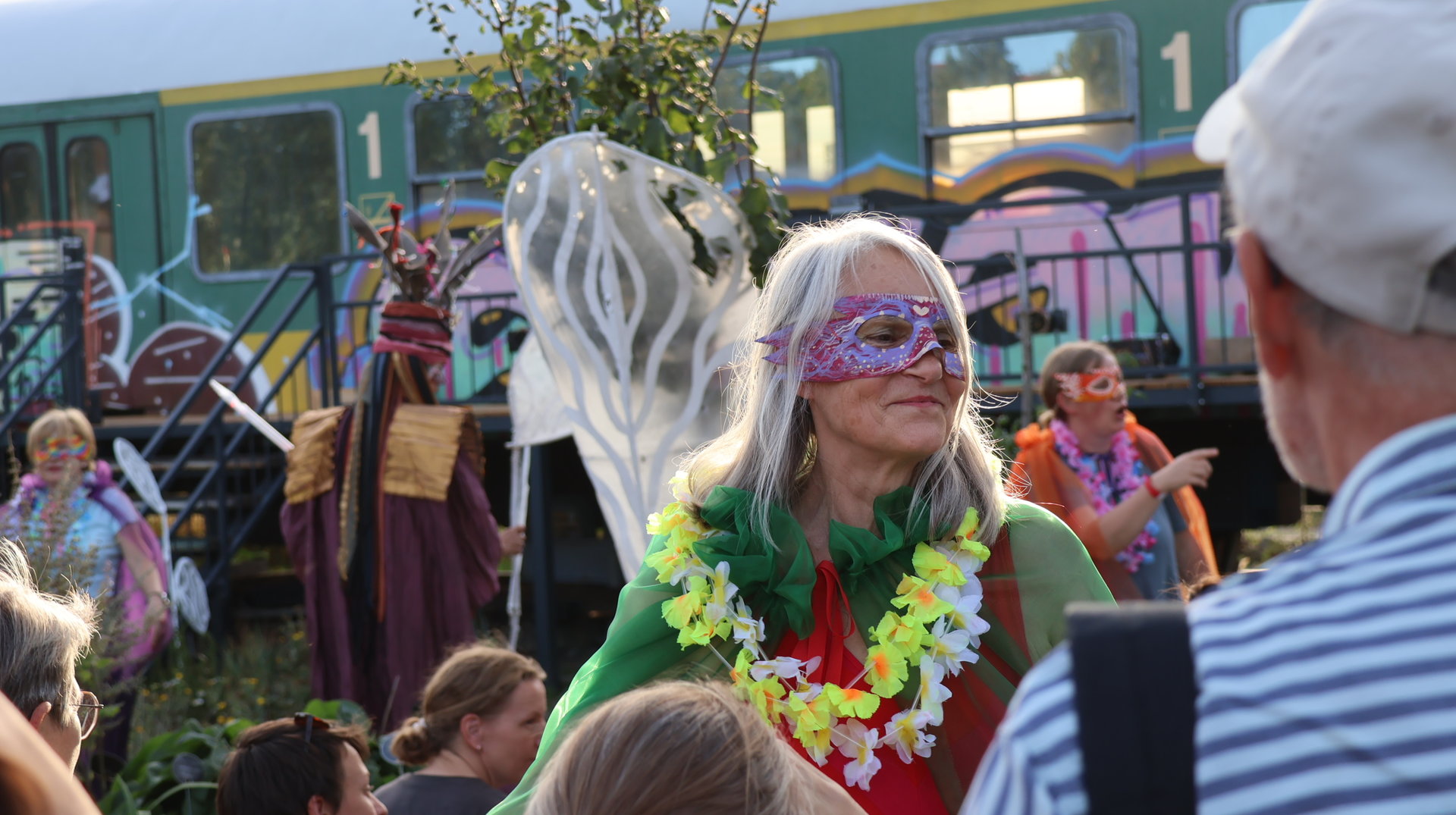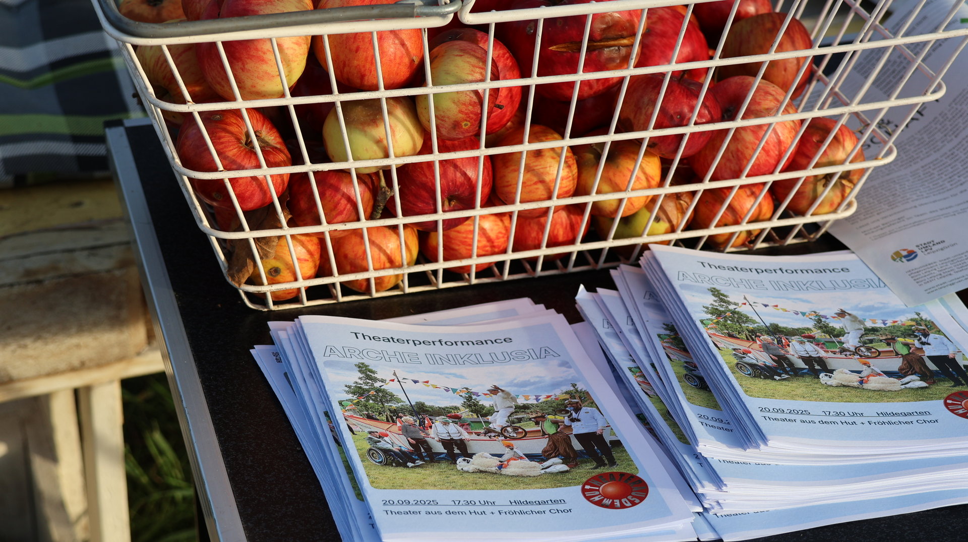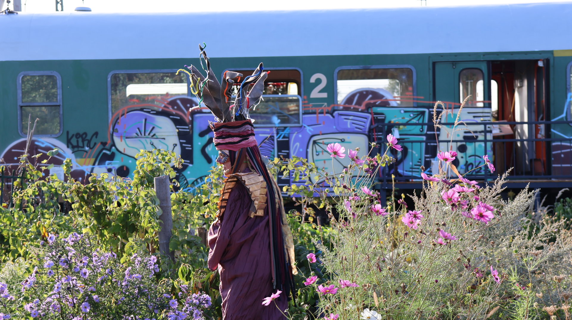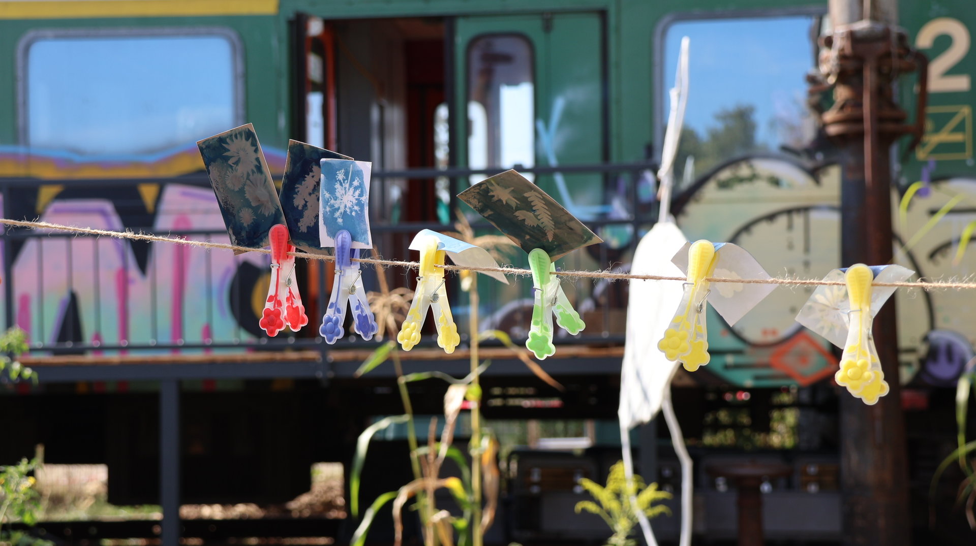 Vormittags ginge los mit einem Sensen-Workshop mit Ekkehard Unger . Ab 12 Uhr wurden wir gemeinsam beim Workshop Sonnendruck kreativ und haben aus kleinen Hildegarten-Funden und Papierresten Kunstwerke mit der Sonne gezaubert. Die Bibliothek Plagwitz war dieses jähr auch wieder mit einer Bastelaktion und Geschichten für Groß und Klein mit dabei. Außerdem konntet ihr euch über verschiedenste Themen informieren: Martin Schlegel hat an seinem Stand seine Peer-Beratungvorgestellt. Es gab einen Infostand von foodsharing und der Aktionswochen für gentechnikfreies Essen. Zum Abschluss des Co-Ups gab es ein besonderes Highlight: Das Theaterstück „Arche Inklusia“. Eine musikalisch-performative Reise ins Paradies mit Expeditionen und Landgängen im „Garten der Seligen“. Mit dabei waren das Theater aus dem Hut, Fröhlicher Chor und denkmalsozial aus Leipzig und Torgau. Artisten und verwandlungsfreudigen Amateur*innen mit und ohne Behinderung. Und: Der Waggon wurde eingeweiht!