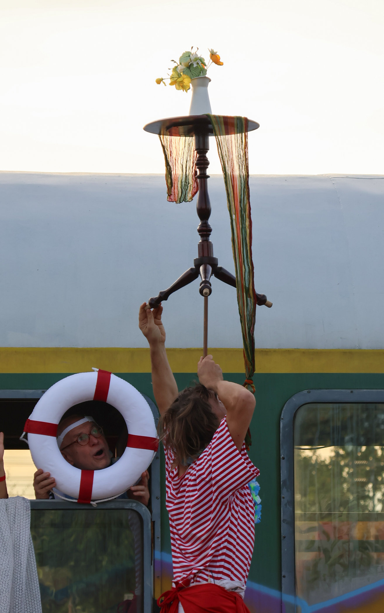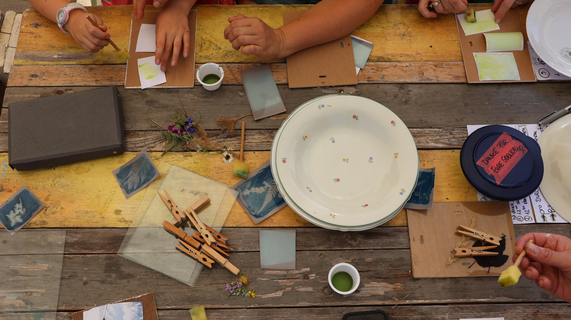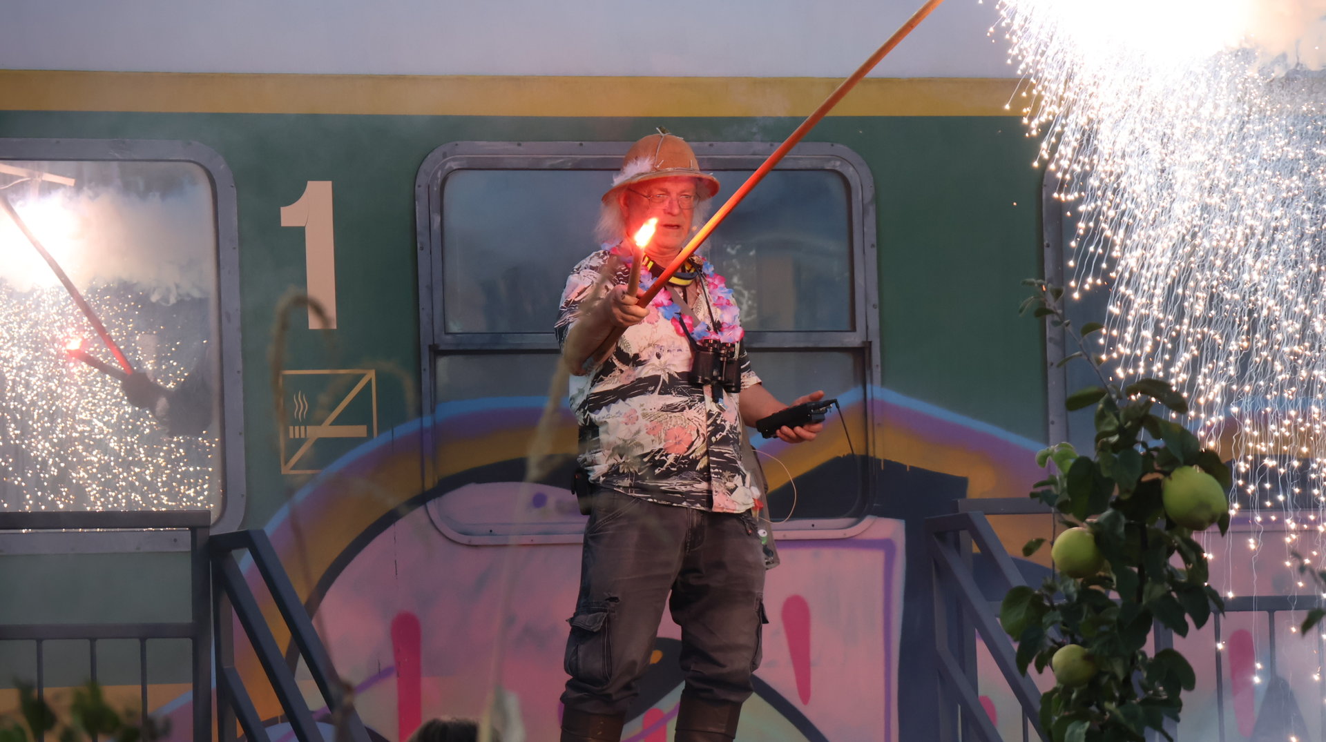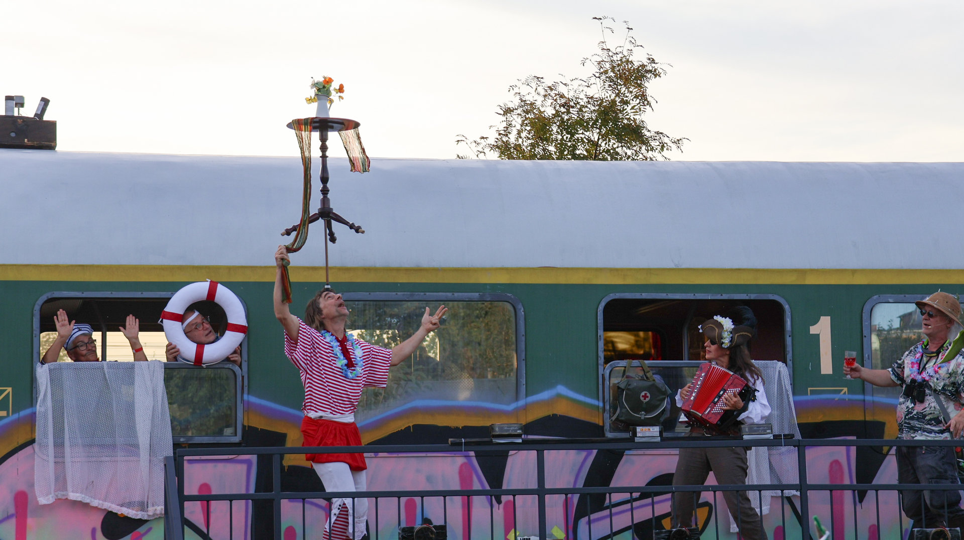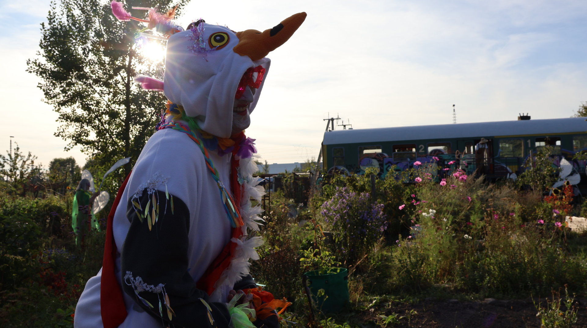 Vormittags ginge los mit einem Sensen-Workshop mit Ekkehard Unger . Ab 12 Uhr wurden wir gemeinsam beim Workshop Sonnendruck kreativ und haben aus kleinen Hildegarten-Funden und Papierresten Kunstwerke mit der Sonne gezaubert. Die Bibliothek Plagwitz war dieses jähr auch wieder mit einer Bastelaktion und Geschichten für Groß und Klein mit dabei. Außerdem konntet ihr euch über verschiedenste Themen informieren: Martin Schlegel hat an seinem Stand seine Peer-Beratungvorgestellt. Es gab einen Infostand von foodsharing und der Aktionswochen für gentechnikfreies Essen. Zum Abschluss des Co-Ups gab es ein besonderes Highlight: Das Theaterstück „Arche Inklusia“. Eine musikalisch-performative Reise ins Paradies mit Expeditionen und Landgängen im „Garten der Seligen“. Mit dabei waren das Theater aus dem Hut, Fröhlicher Chor und denkmalsozial aus Leipzig und Torgau. Artisten und verwandlungsfreudigen Amateur*innen mit und ohne Behinderung. Und: Der Waggon wurde eingeweiht!