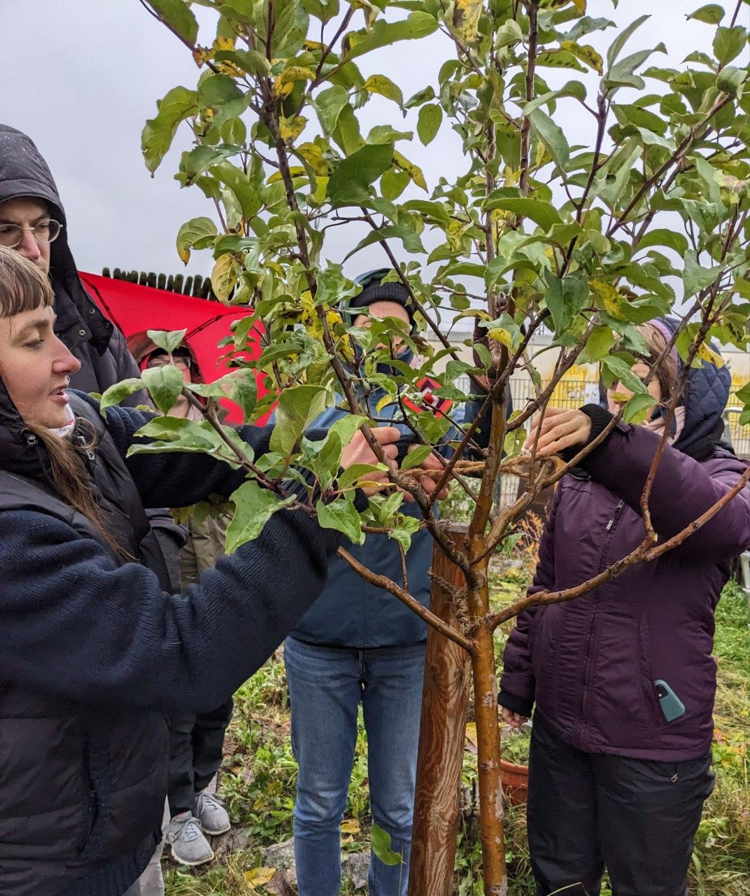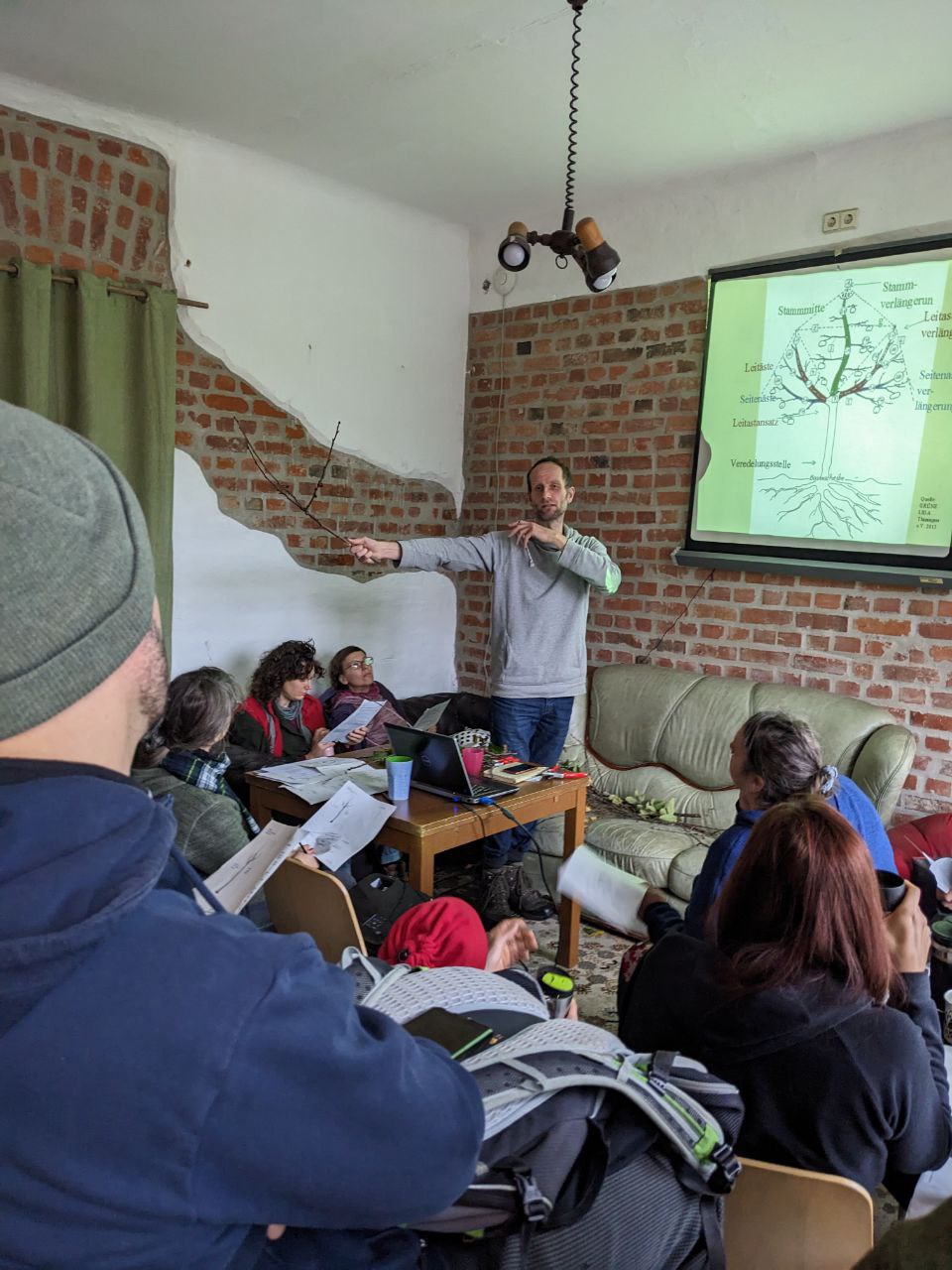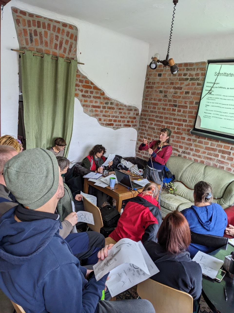 Zum Workshop "Obstbaumschnitt" sind wir sehr zahlreich zusammengekommen und haben uns riesig über das große Interesse am Thema gefreut. Zu Beginn der Veranstaltung gab es einen theoretischen aber praxisnahen Input, bei dem wir viel über Bäume, ihren Aufbau, ihre Heilkräfte und ihr Wachstum gelernt haben. In diesem Rahmen haben wir uns maßgeblich damit beschäftigt, warum wir Obstbäume überhaupt schneiden (bzw. erziehen) müssen und was es hierbei dringend zu beachten gilt. Veranschaulicht wurde alles an Schnittbeispielen mitgebrachter Zweige, an Bildern und an Fragen zu den (Obst-)Bäumen in unseren eigenen Gärten.