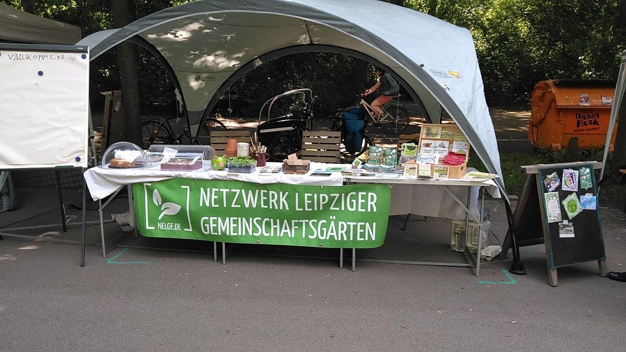 Am Sonntag den 25. Juni haben unserer Gemeinschaftsgärten DILL und Hildegarten als Nelge Teil (Netzwerk Leipziger Gemeinschaftsgärten) an der Ökofete – maßgeblich organisiert vom Ökolöwe – teilgenommen. Im Clara-Zetkin-Park in Leipzig trugen wir mit unserem Stand dazu bei, die Anton-Bruckner-Allee von 12 bis 19 Uhr in Deutschlands größte Umweltmesse zu verwandeln. Gemeinsam sensibilisierten wir aktiv für Klima-, Umwelt- und Naturschutzthemen in Leipzig. Der Tag war bunt, gesellig und vielfältig. Neben uns gab es 136 weitere Stände, einen Gospelchor und Poetry-Slam. Es wurden kleine Pflanzensetzlinge fürs eigene Gemüsebeet bereitgestellt, wir führten Fachgespräche über Nachhaltigkeit und kamen mit vielen Interessierten vor Ort ins Gespräch.