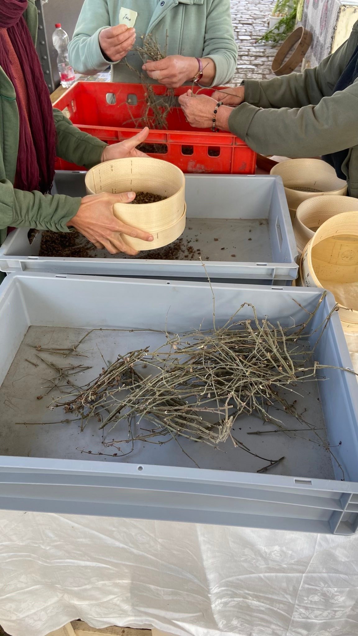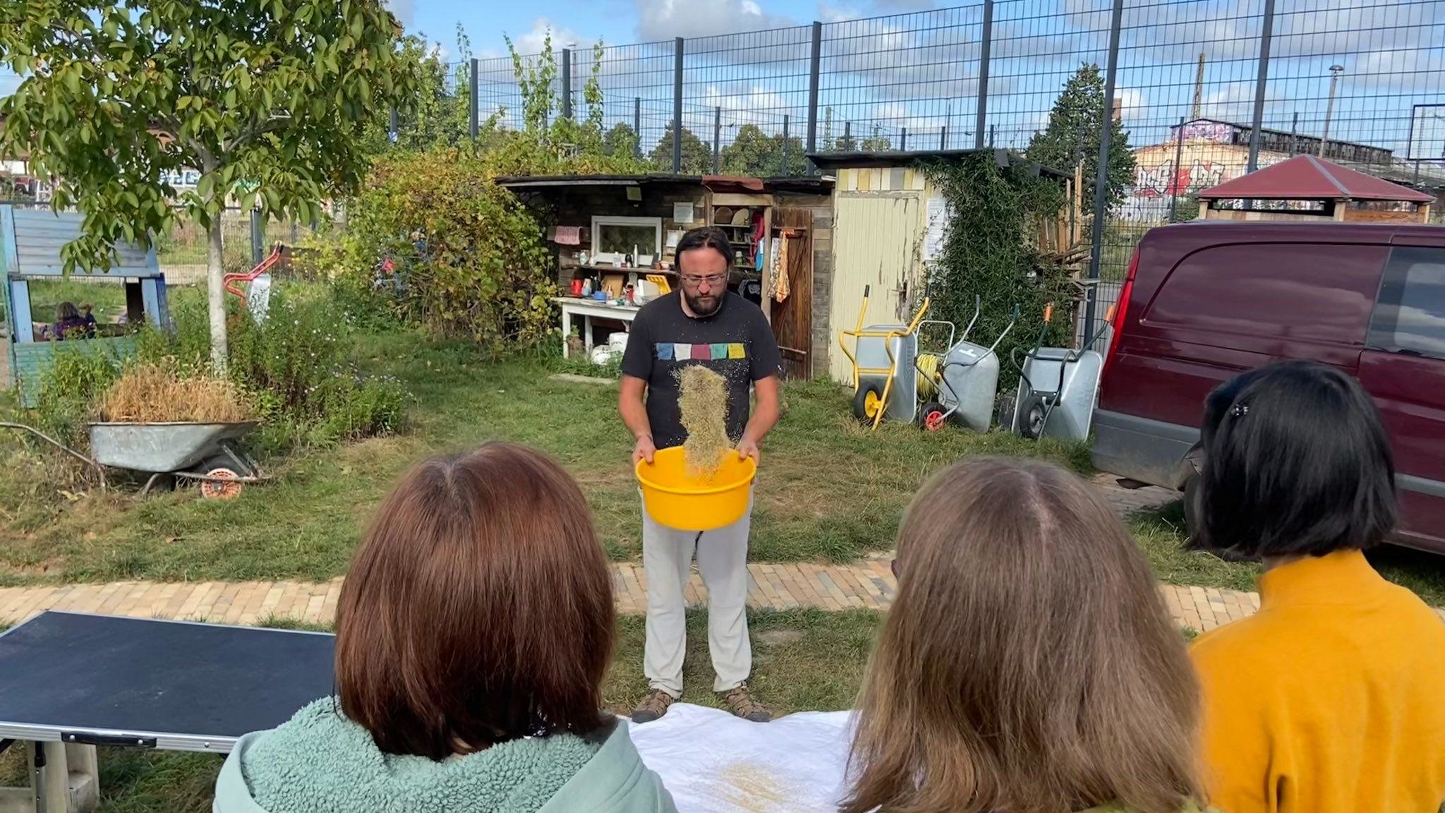 In diesem Workshop lernten wir, wie wir selbstständig eigenes Saatgut von unseren Lieblingskräutern, -gemüse und -blumen herzustellen können. Es wurde ganz praktisch gezeigt, wie die Saatgutgewinnung funktioniert und was es benötigt, eben diese erfolgreich umzusetzen. Gemeinsam mit unserem Workshopleiter Sebastian von der SoLaWi Langendorf e.V. haben wir in einem 3-stündigen Workshop die Grundvoraussetzungen besprechen und anschließend praktisch durchgeführt. Auch Pflanzenkunde, Materialien, Begrifflichkeiten und essentielle Fragen wie: „Warum gewinnt der Mensch Saatgut?“ und „Warum ist es wichtig, Saatgut zu vermehren?“ wurden von Sebastian erklärt. Im Verlauf des Morgens nahmen wir daher nicht nur praktische Tipps für die Saatgutgewinnung mit, sondern lernten auch, wie wichtig die Saatgutgewinnung für die Pflanzenvielfalt und Nachhaltigkeit ist.