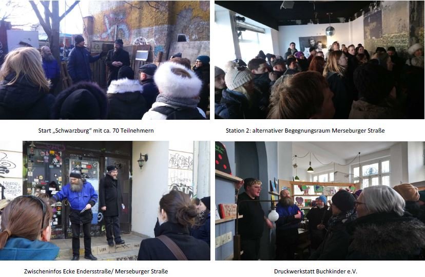 Interessante Orte im Quartier lebendig erleben. Auf der Tour am 28. Februar 2018, 14:00 Uhr stellten sich Akteur*innen und Initiativen vor und luden zum Mitmachen ein.