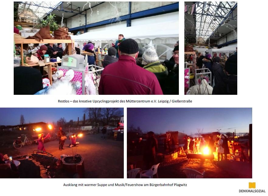Der erste „Stadtgang“ startete trotz klirrender Kälte an der Mündung der Georg-Schwarz-Straße in die Merse- burger Straße und führte 3h durch den Leipziger Westen zum Bürgerbahnhof Plagwitz, wo er mit einem kleinen Programm (Musik und Feuershow) bei warmer Suppe und Getränken (bereitgestellt vom Café Heiter bis Wolkig als deren Pre-Eröffnung) seinen Ausklang fand. Trotz der Kälte waren die Besucher*innen begeistert und haben in großer Anzahl bis zum Ziel am Bürgerbahnhof teilgenommen.
